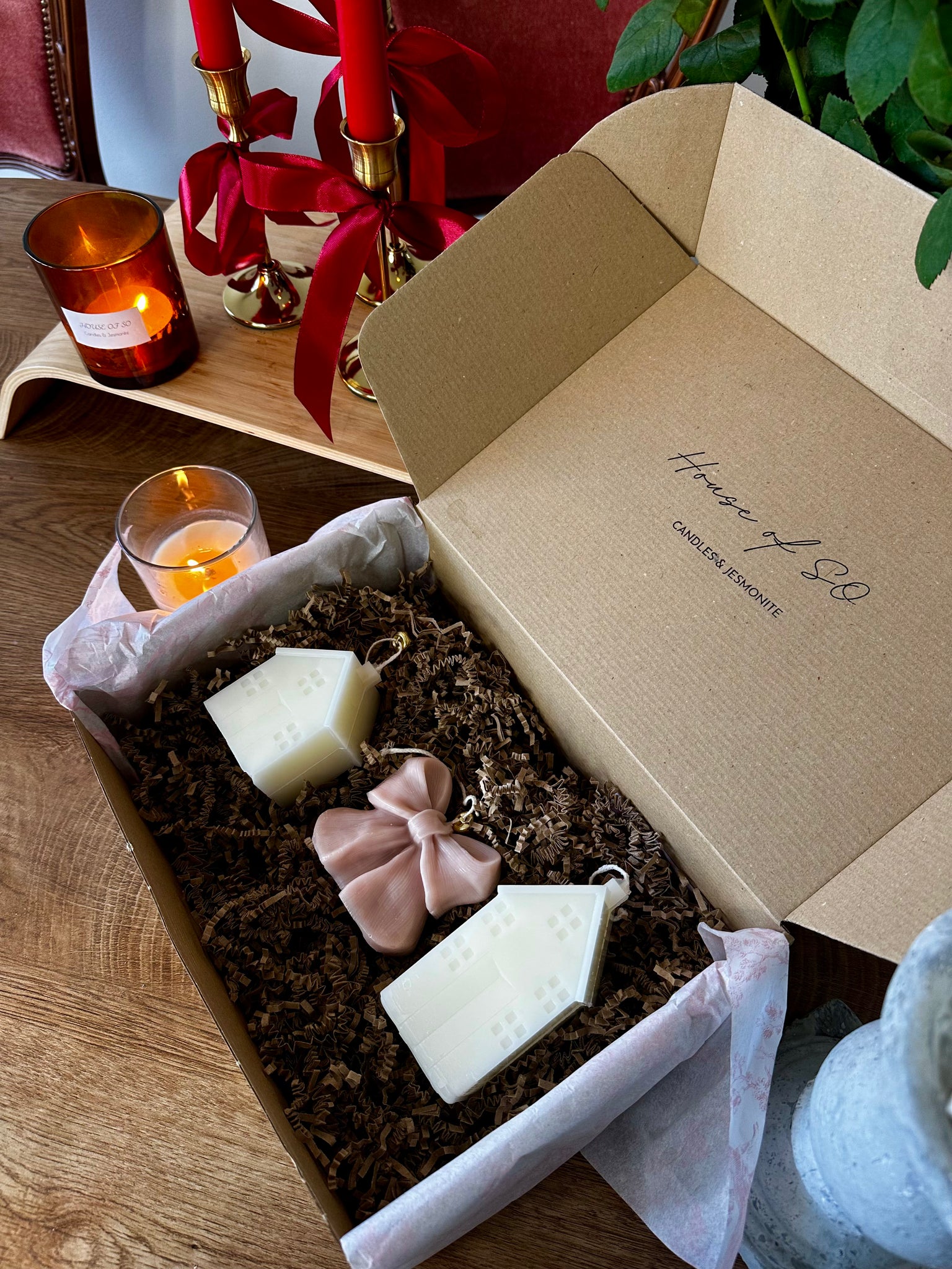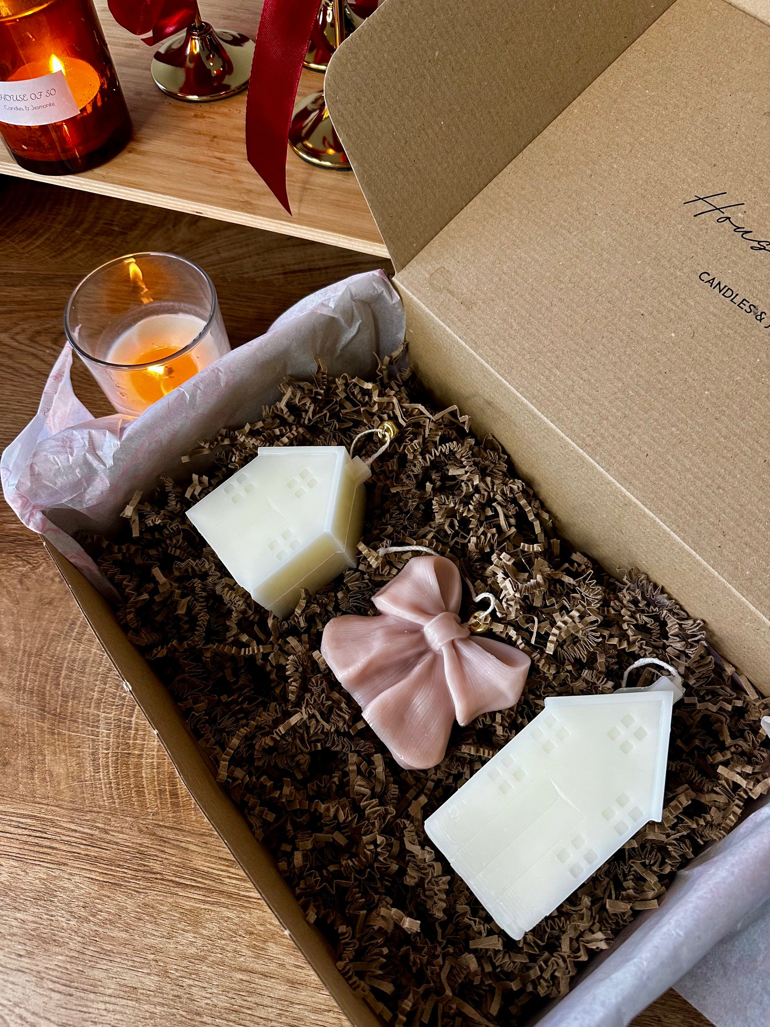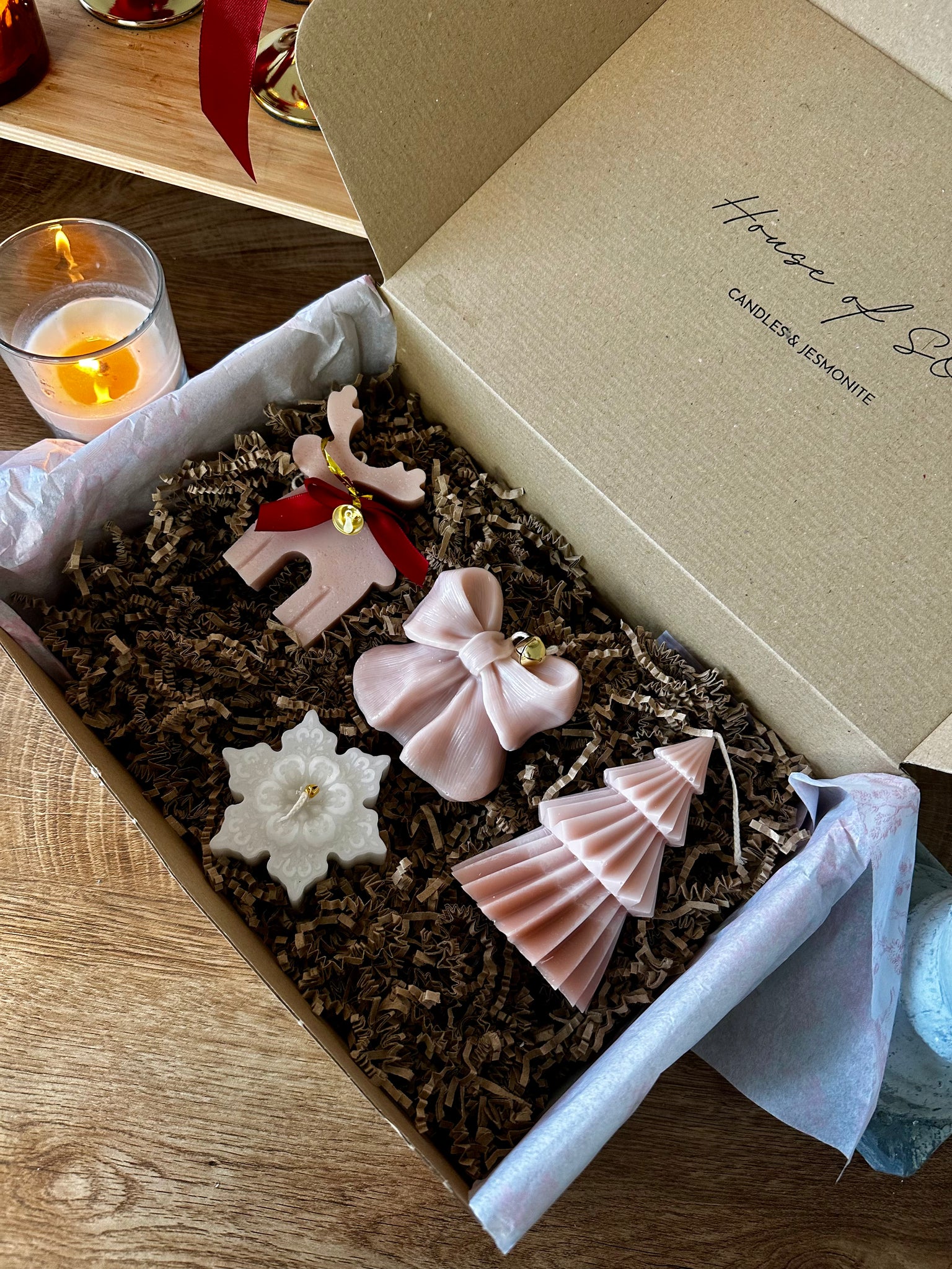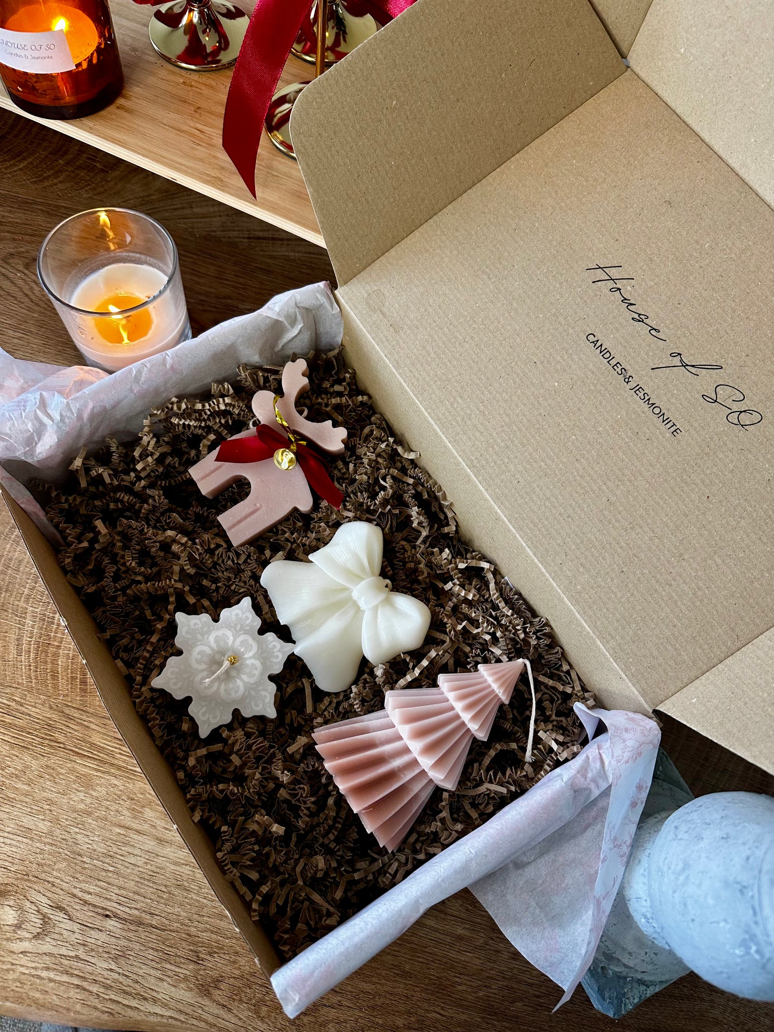 This Christmas, House of So brings you a collection made to spark joy, invite calm, and fill every home with the magic of the holidays. Each box is carefully curated with handmade Christmas candles — from cute reindeers and elegant bows, to glowing Christmas trees, cosy Dutch houses, and our bestselling candle-in-a-jar that melts like a soft hug.