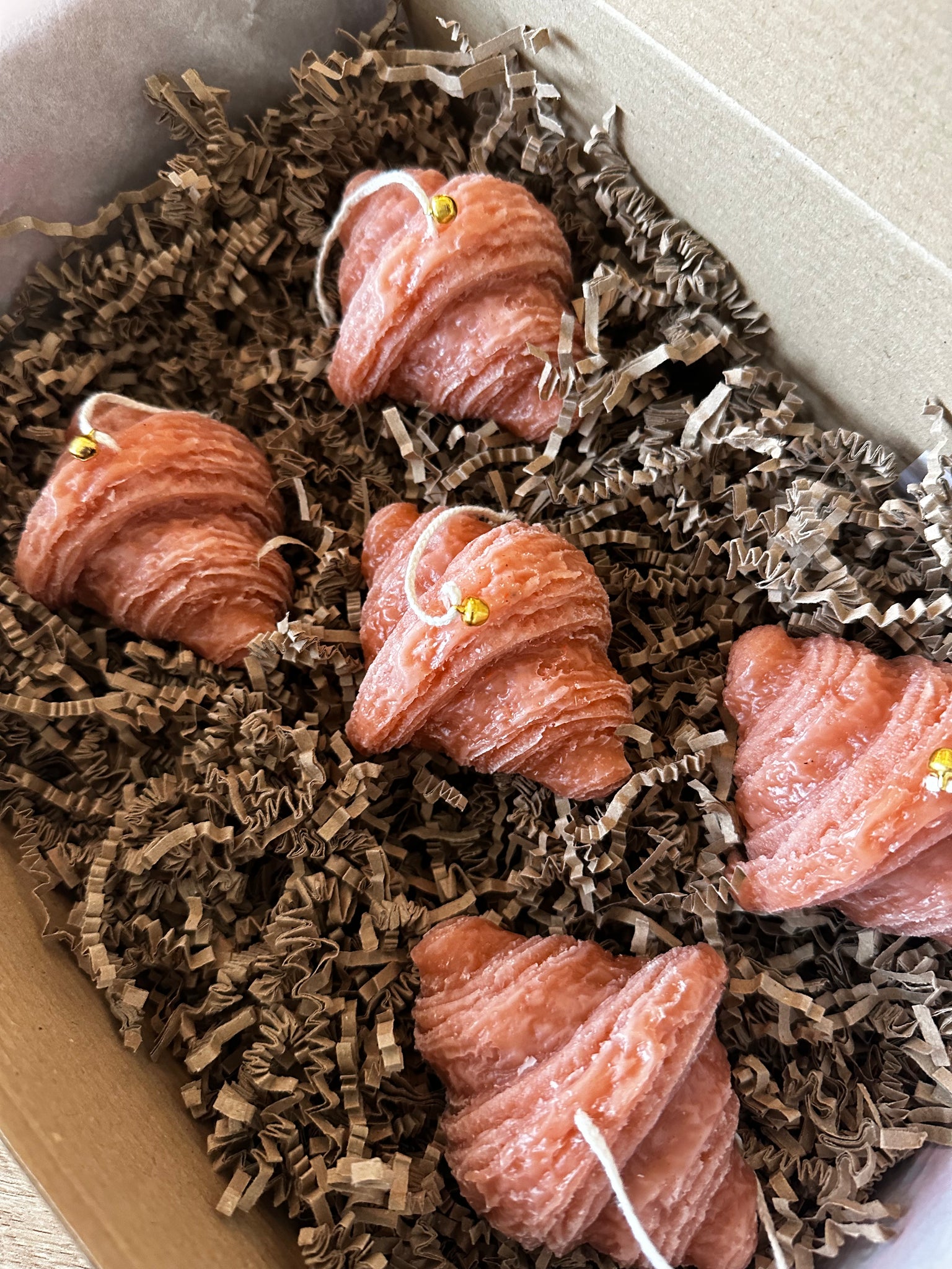Five handmade croissant candles that look delicious and feel like a warm coffee morning.